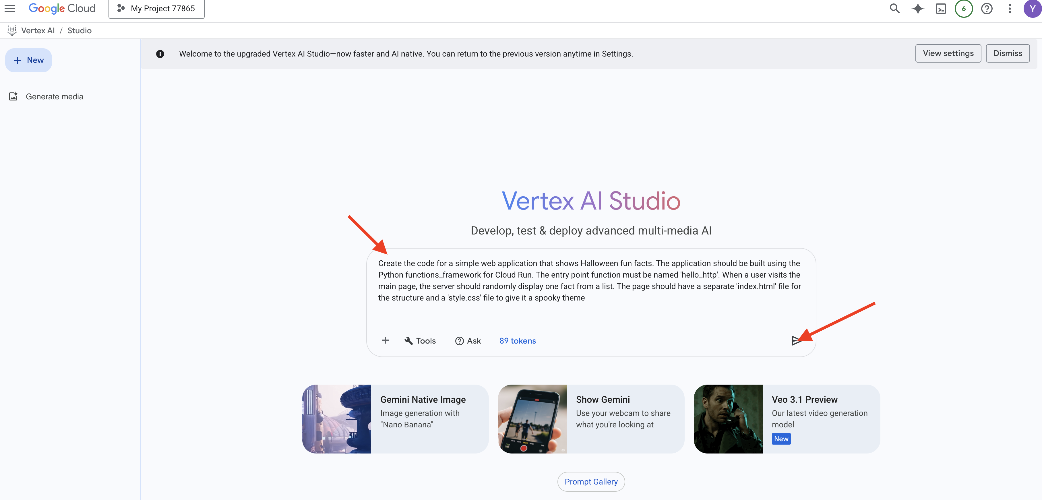 - Navigate to Vertex AI Studio: