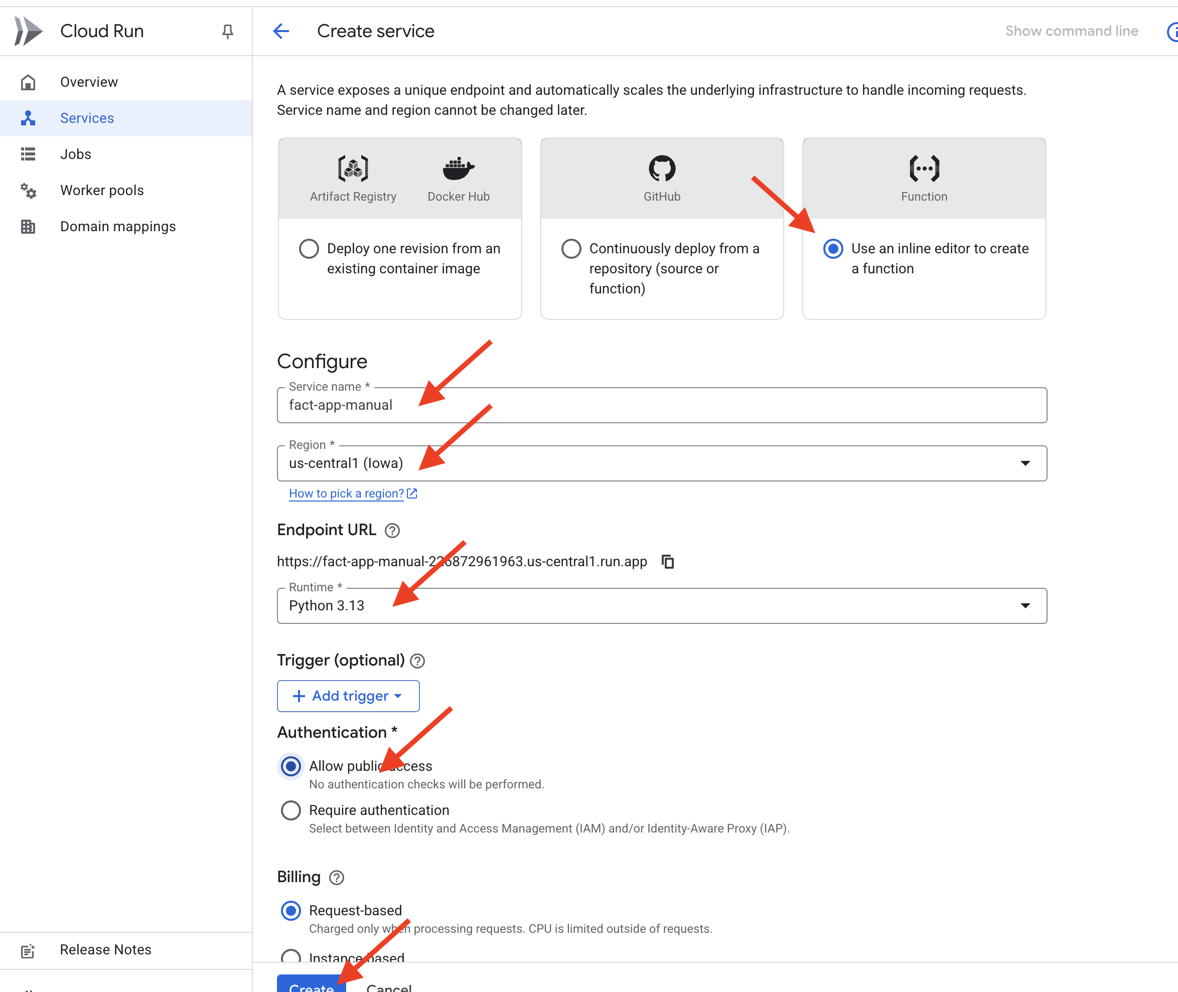 us-central1. - Select Allow public access.