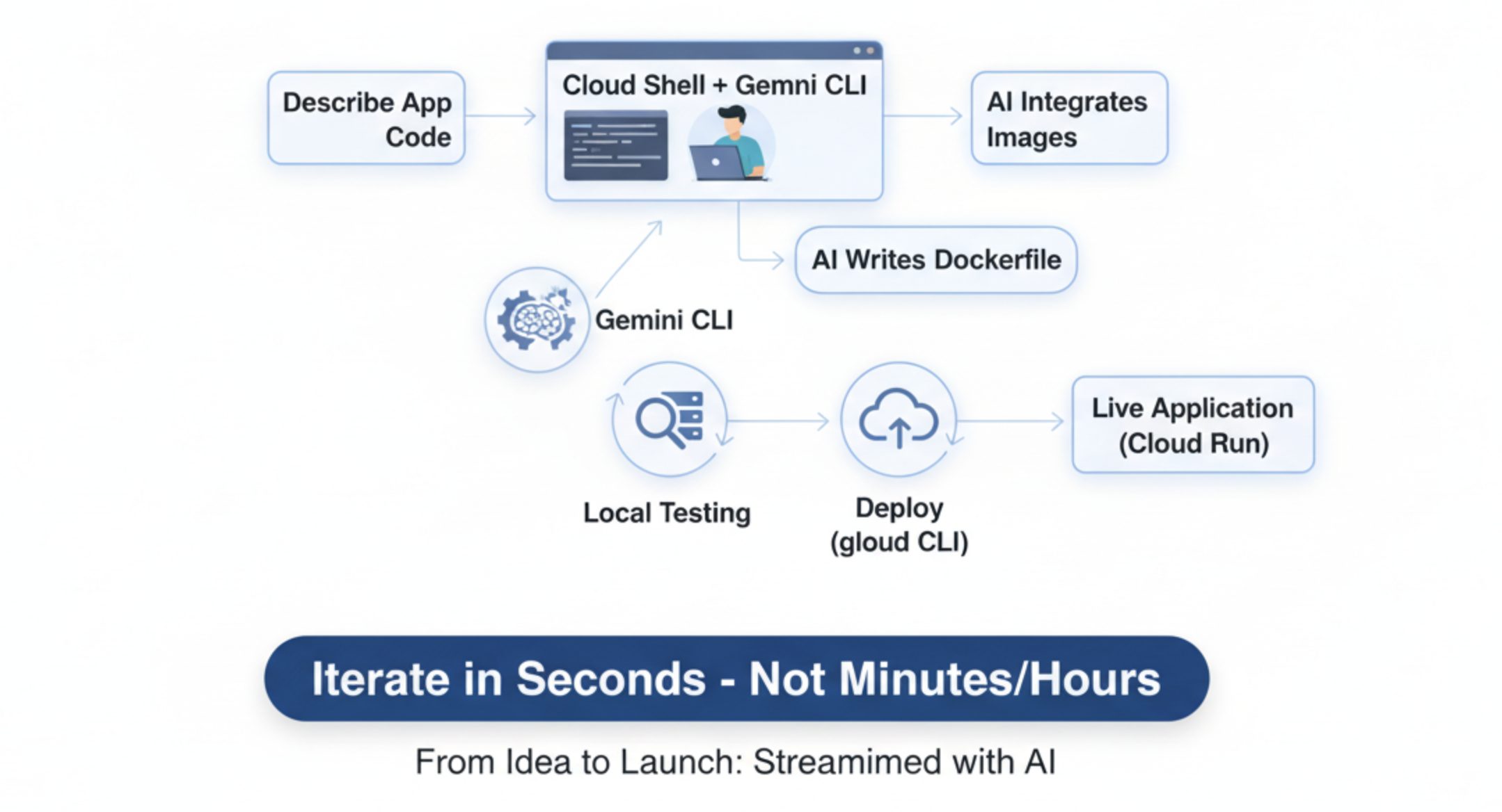The console is great for learning, but it's slow for iterative development. Now, we will see the developer's preferred workflow, using the Cloud Shell and Gemini CLI to turn that entire multi-step process into a streamlined conversation.