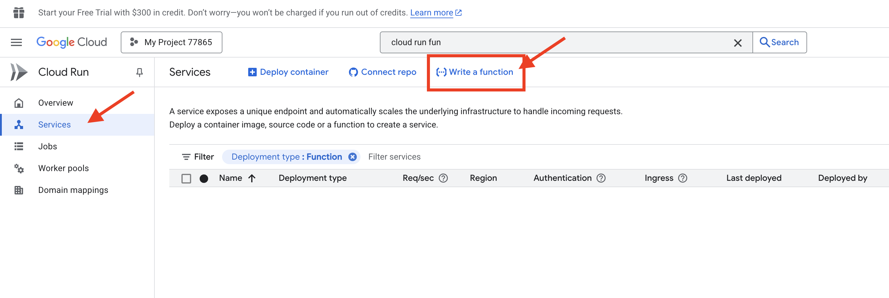 对于首次部署,我们将使用 Cloud Run 控制台的内嵌编辑器,手动将代码复制到相应位置。