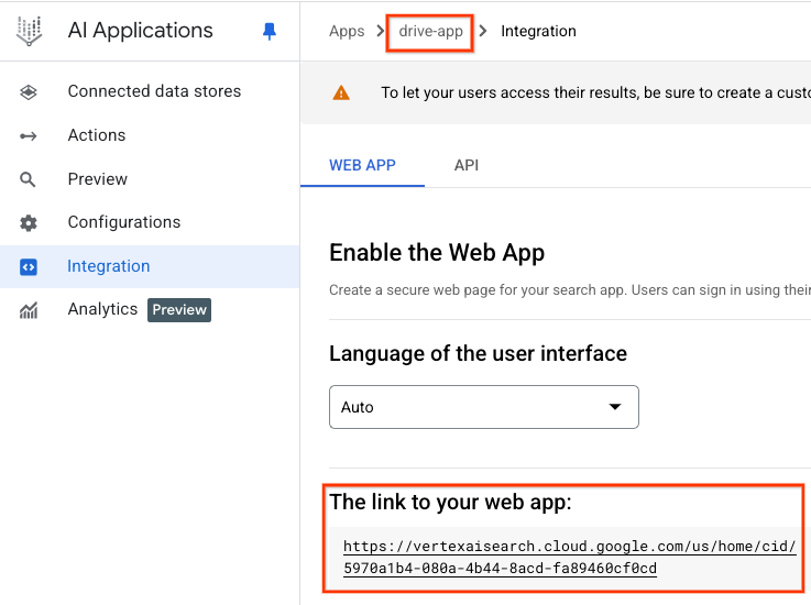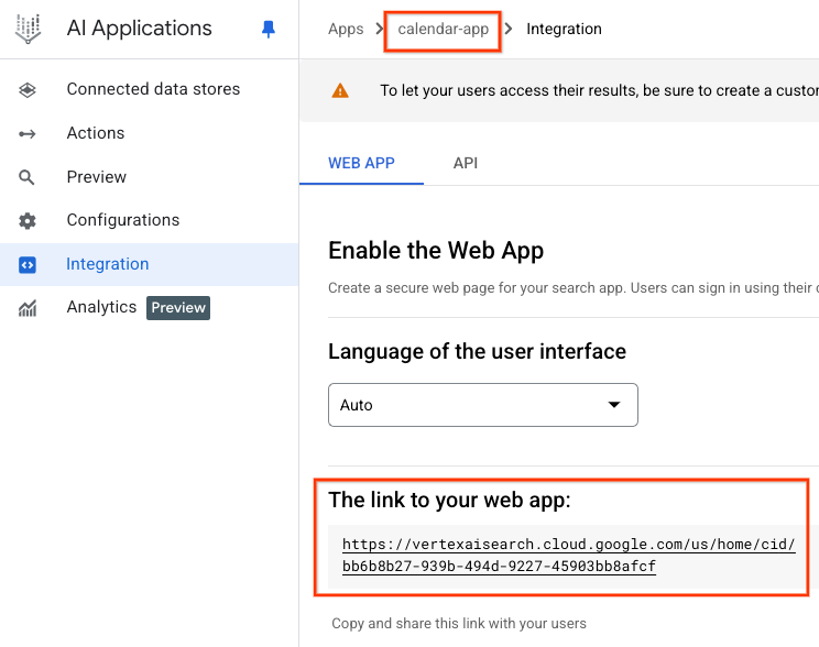 - Access your Agentspace application by opening a web browser and navigating to your custom domain and specified path.
