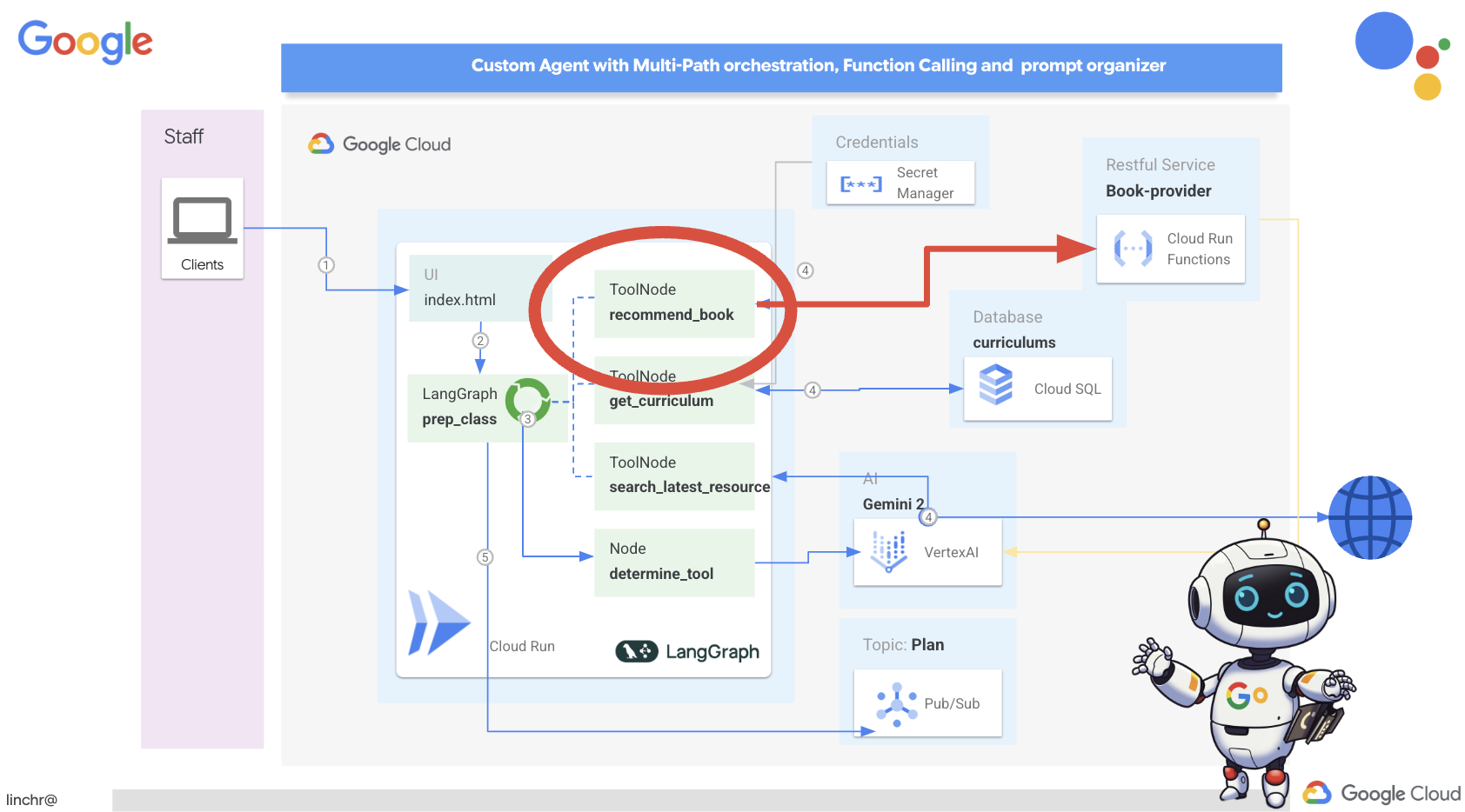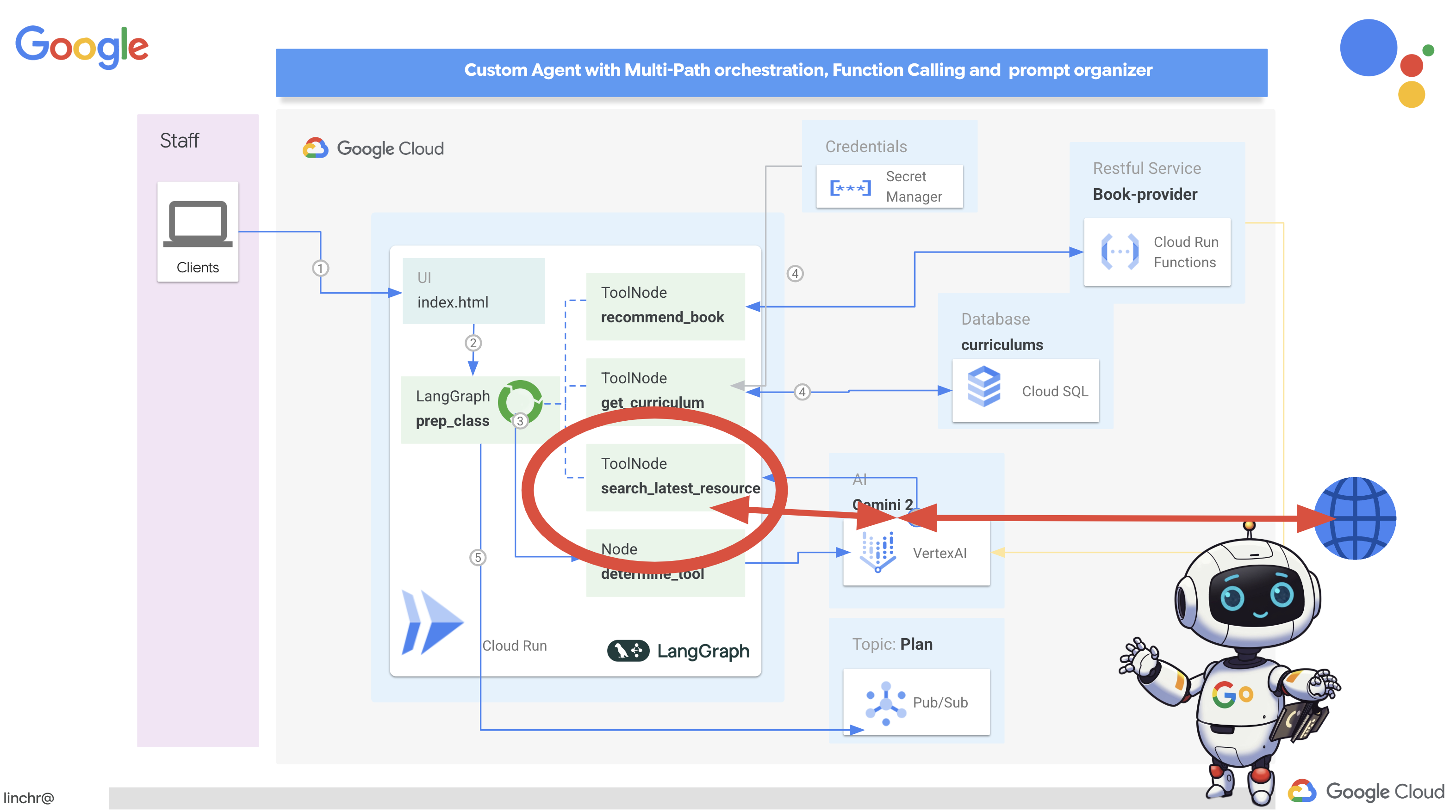 יצירת הסוכן הראשון באמצעות LangGraph: נשתמש ב-LangGraph, מסגרת פופולרית, כדי ליצור סוכן משלכם. תלמדו איך ליצור כלים שמתחברים למסדי נתונים, להשתמש ב-Gemini 2 API העדכני ביותר כדי לבצע חיפוש באינטרנט ולבצע אופטימיזציה של ההנחיות והתשובות, כדי שהסוכן יוכל לקיים אינטראקציה לא רק עם מודלים של LLM, אלא גם עם שירותים קיימים. בנוסף, נראה איך קוראים לפונקציות.
