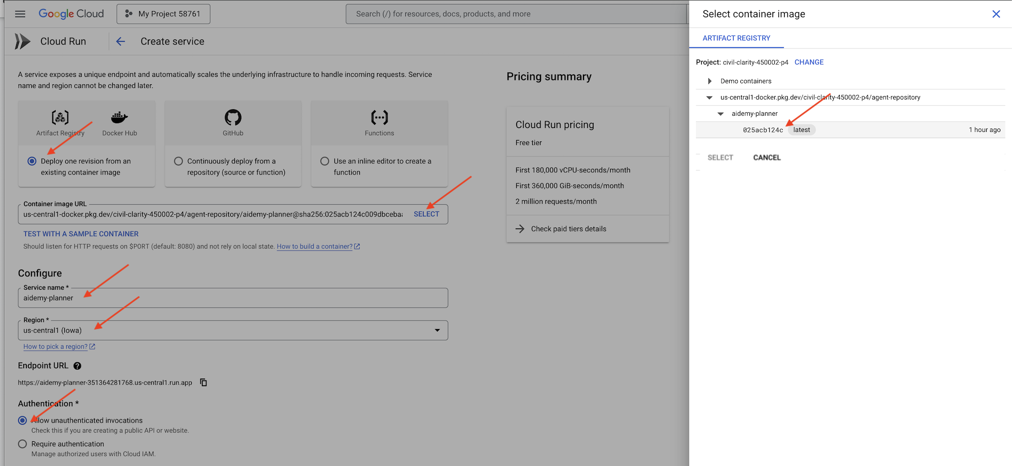 - Artifact Registry: אחסון קובצי אימג' של Docker לנציגים.