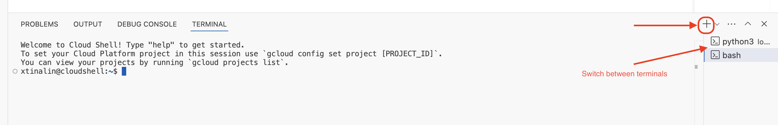 👉פותחים את הטרמינל בסביבת הפיתוח המשולבת בענן,