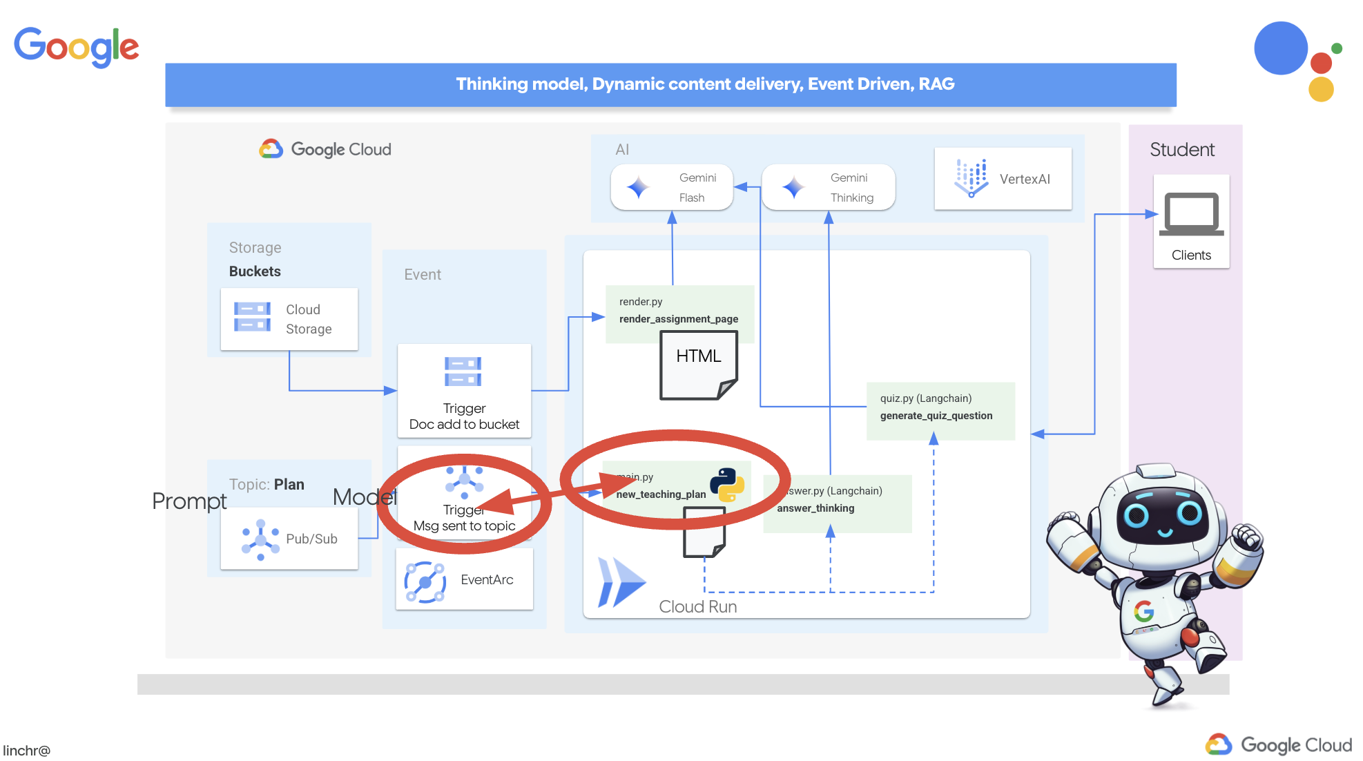 בעיקרון, הארכיטקטורה שלנו משלבת את העוצמה של מודלים LLM עם נתונים מובְנים ותקשורת מבוססת-אירועים, והכול פועל ב-Google Cloud. כך אנחנו יכולים ליצור כלי עזר למורים שאפשר להתאים לצרכים השונים, שהוא מהימן ויעיל.