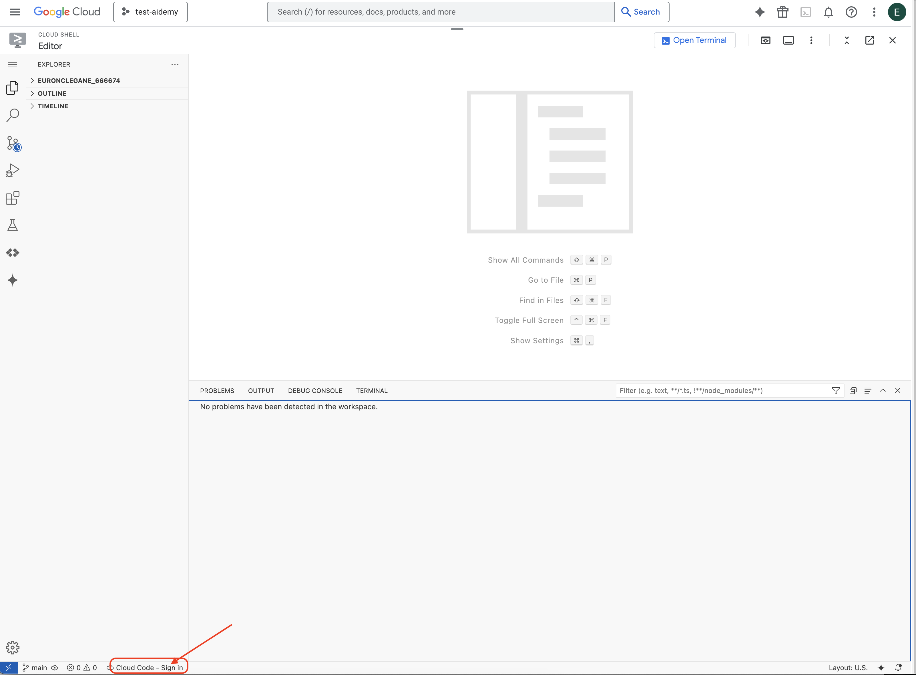 👉روی Activate Cloud Shell در بالای کنسول Google Cloud کلیک کنید (این نماد شکل ترمینال در بالای صفحه Cloud Shell است)، روی دکمه "Open Editor " کلیک کنید (به نظر می رسد یک پوشه باز با یک مداد است). با این کار ویرایشگر کد Cloud Shell در پنجره باز می شود. در سمت چپ یک فایل کاوشگر خواهید دید.
