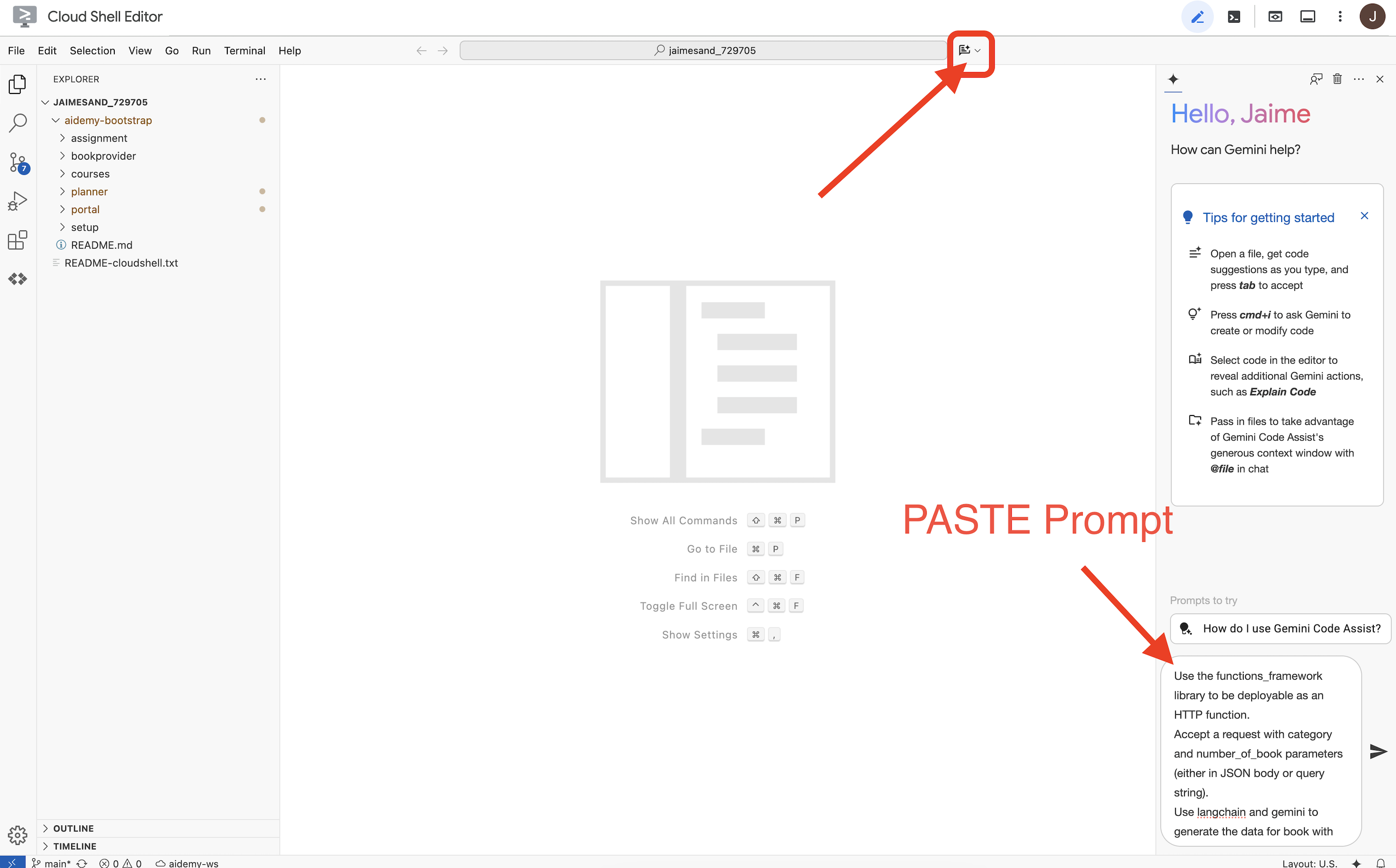 Gemini Code Assist را در Cloud Shell IDE فعال کنید