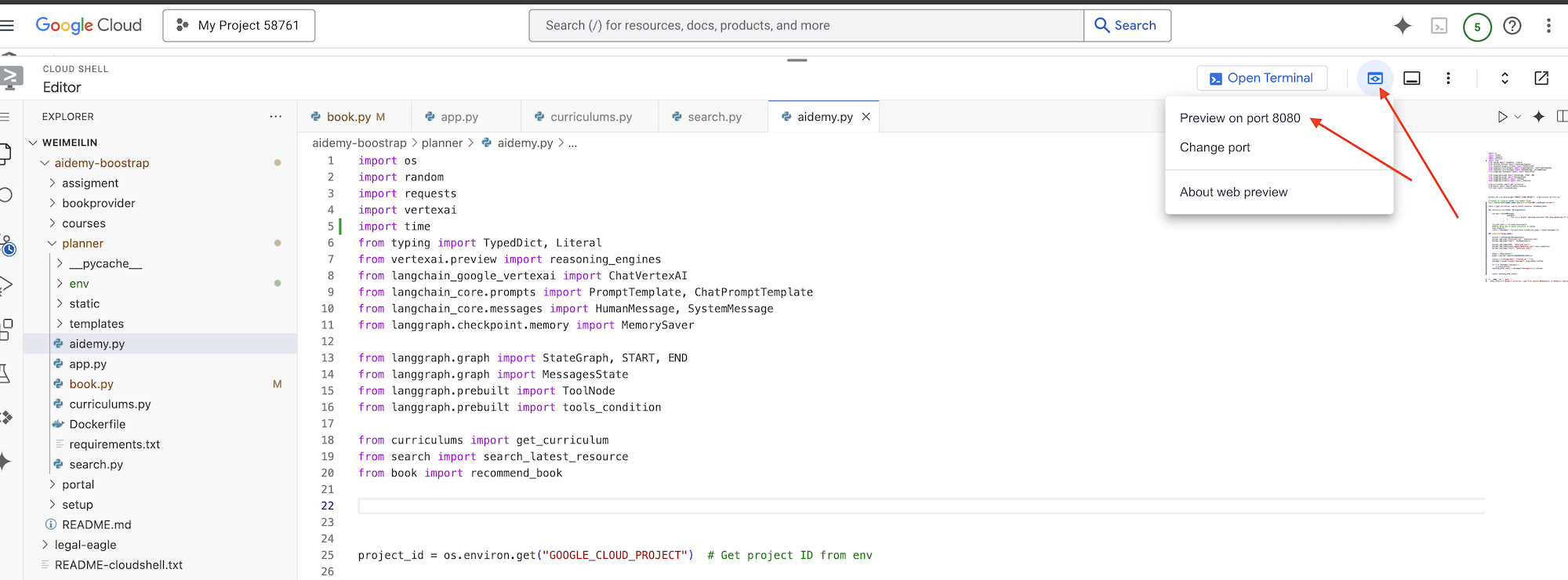 เปิดใช้ Gemini Code Assist ใน IDE ของ Cloud Shell