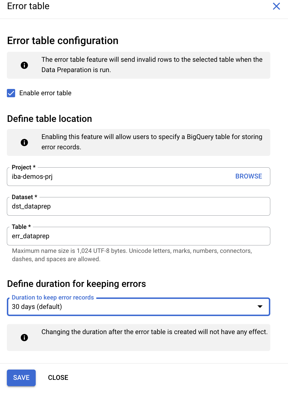 - Check the "Failed validation rows go to error table" option if it is not checked