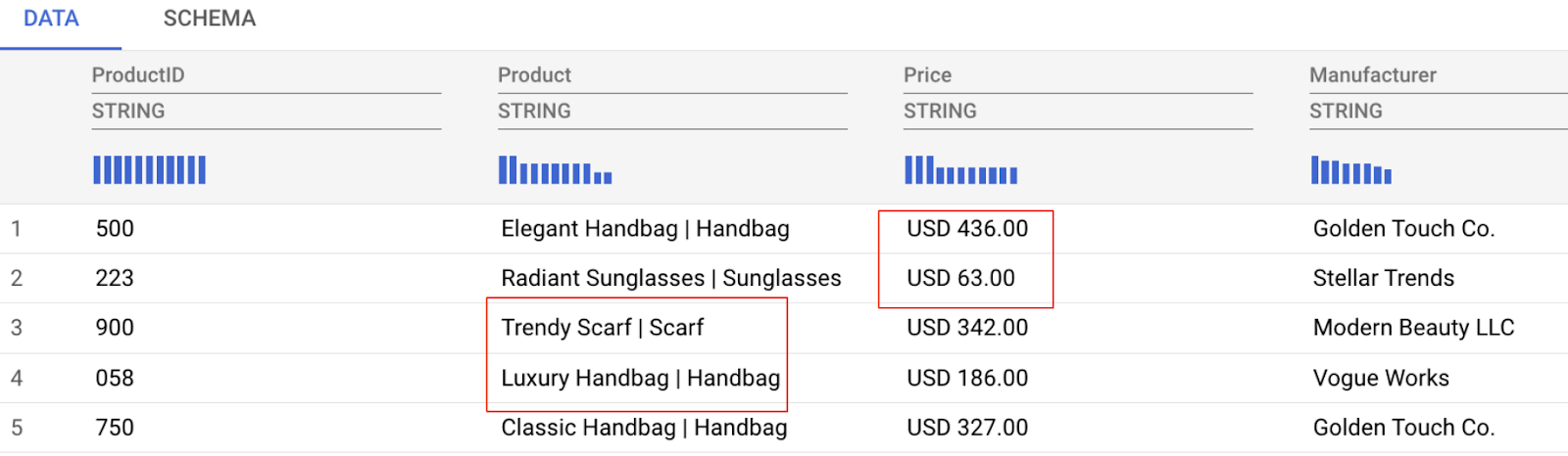 Next for the Price column, let's convert data type from STRING toNUMERIC.
