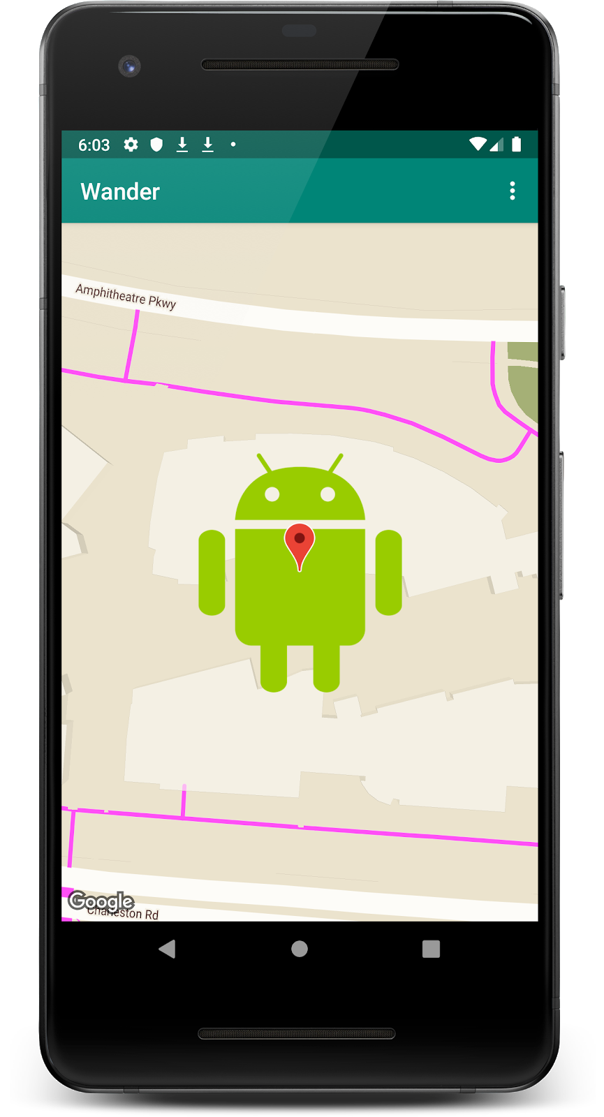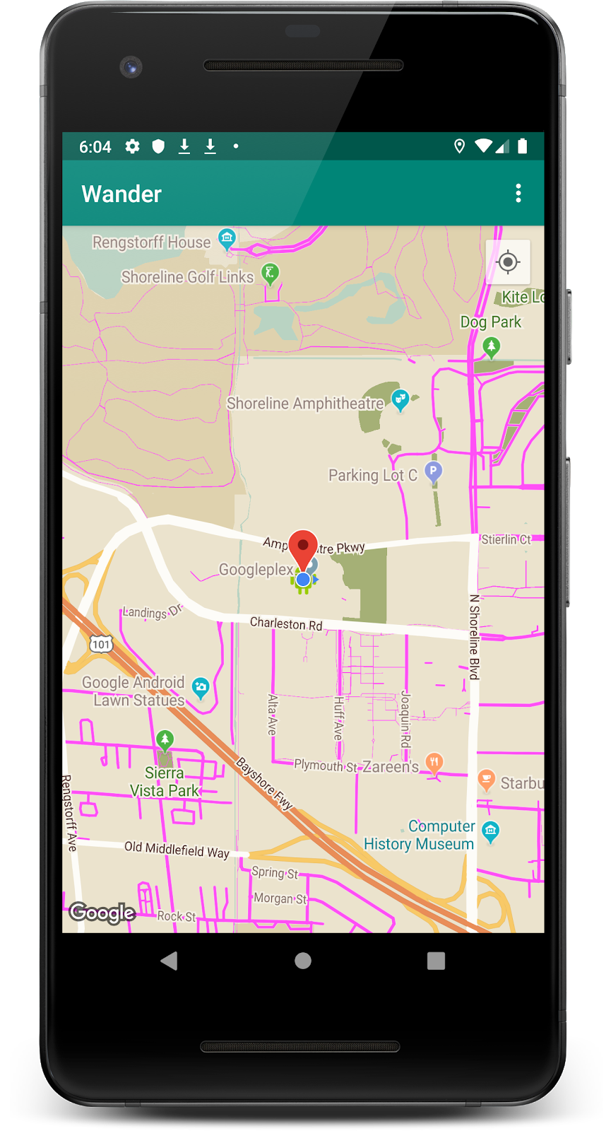 Wander, que tiene un mapa de Google incorporado - Cómo crear funciones personalizadas para tu app, como marcadores y estilos