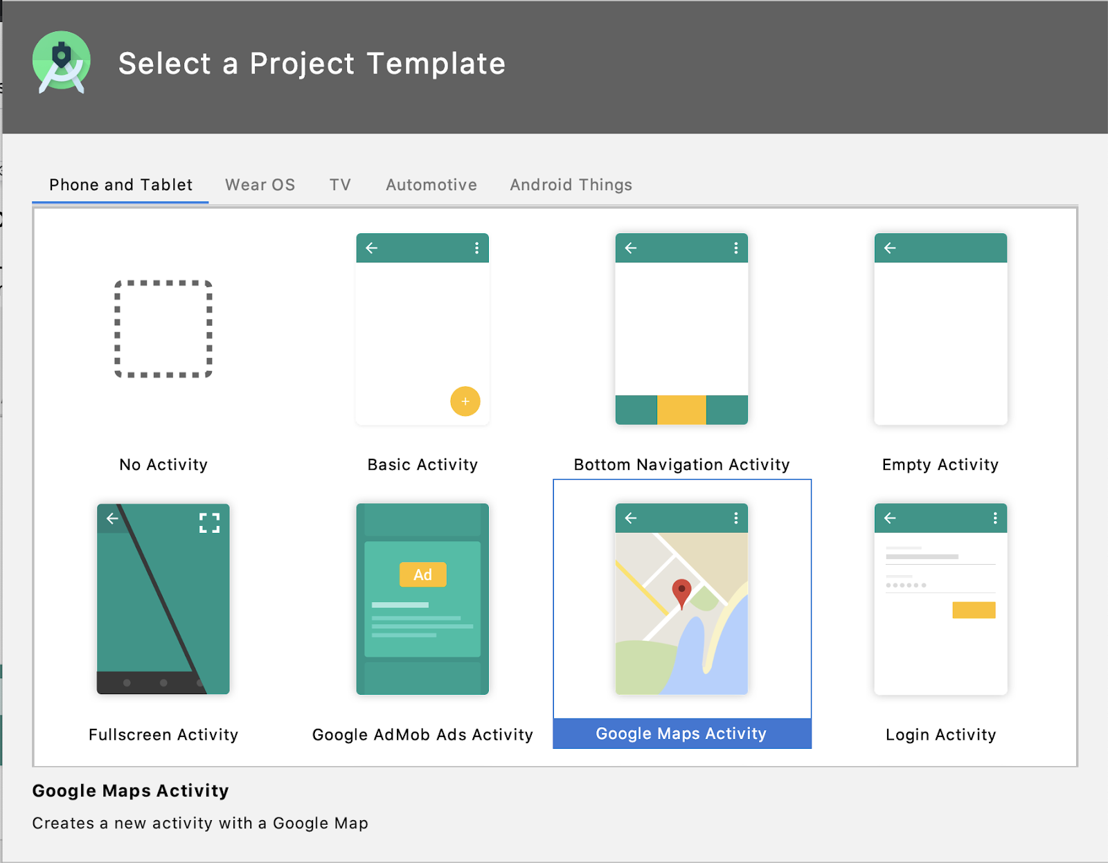 Android Studio incluye una plantilla de actividad de Google Maps, que genera un código de plantilla útil. El código de la plantilla incluye un archivo google_maps_api.xml que contiene un vínculo que simplifica la obtención de una clave de API.