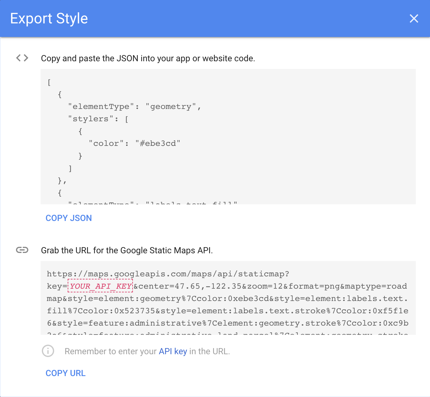 Android Studio chứa một mẫu Hoạt động trên Google Maps để tạo mã mẫu hữu ích. Mã mẫu bao gồm tệp google_maps_api.xml chứa đường liên kết giúp đơn giản hoá việc lấy khoá API.