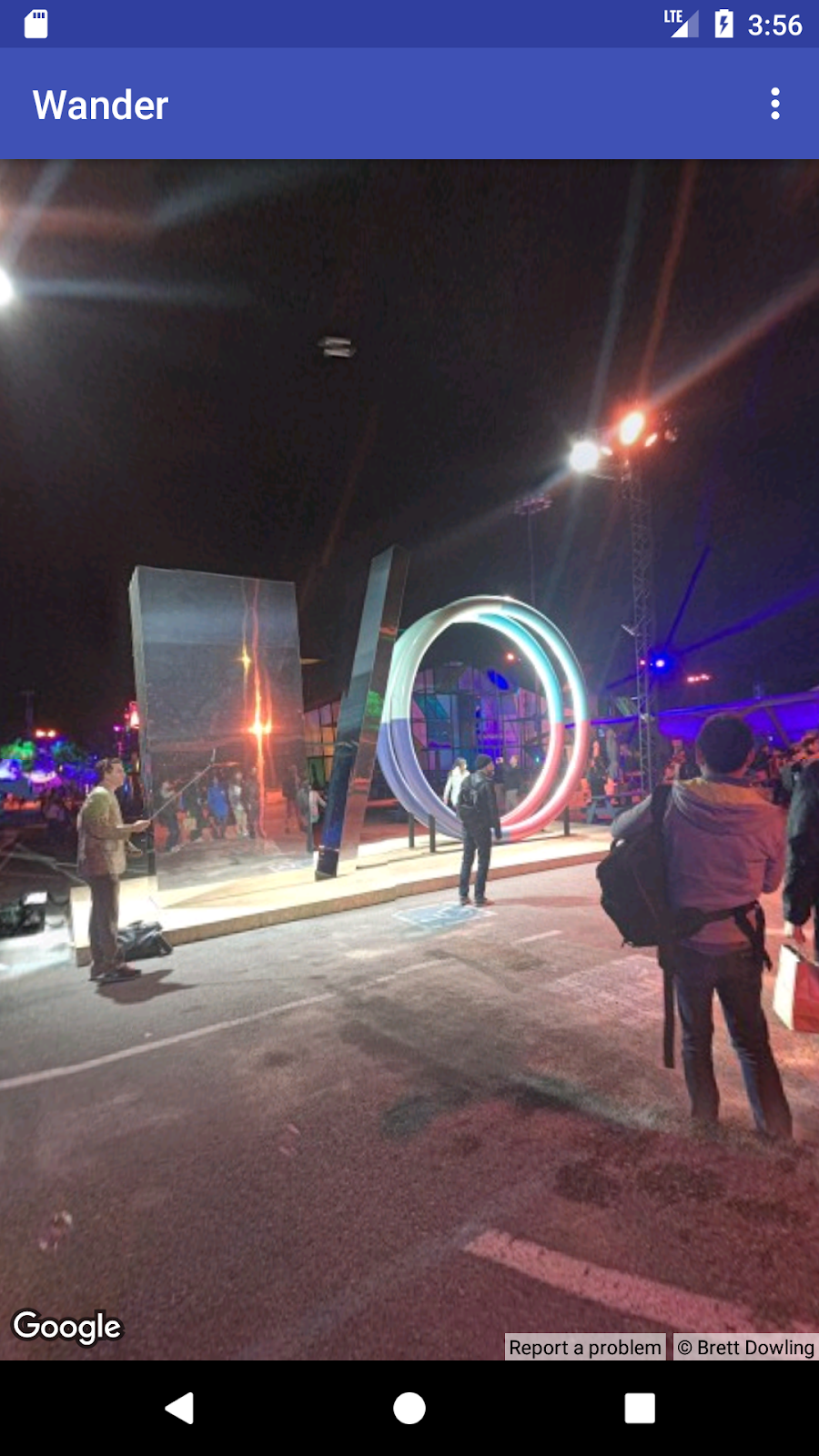 この演習では、スタイル付き Google マップである Wander アプリを作成します。Wander アプリを使用すると、場所にマーカーをドロップしたり、現在地をリアルタイムで確認したり、ストリートビュー パノラマを確認したりできます。