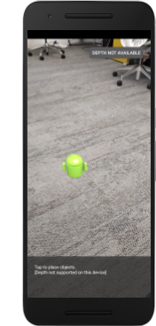 Por ejemplo, si colocas una figura de Android detrás de una silla, la renderización aparecerá delante de ella, dado que la app no reconoce que la silla está allí y que debería ocultar la figura.