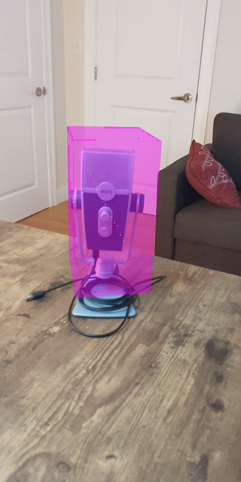 Executar o codelab agora resulta em um subconjunto de pontos sendo renderizados. Esses pontos representam os objetos na cena, ignorando as superfícies planas em que eles estão apoiados. Você pode usar esses dados para estimar o tamanho e a posição dos objetos agrupando pontos.
