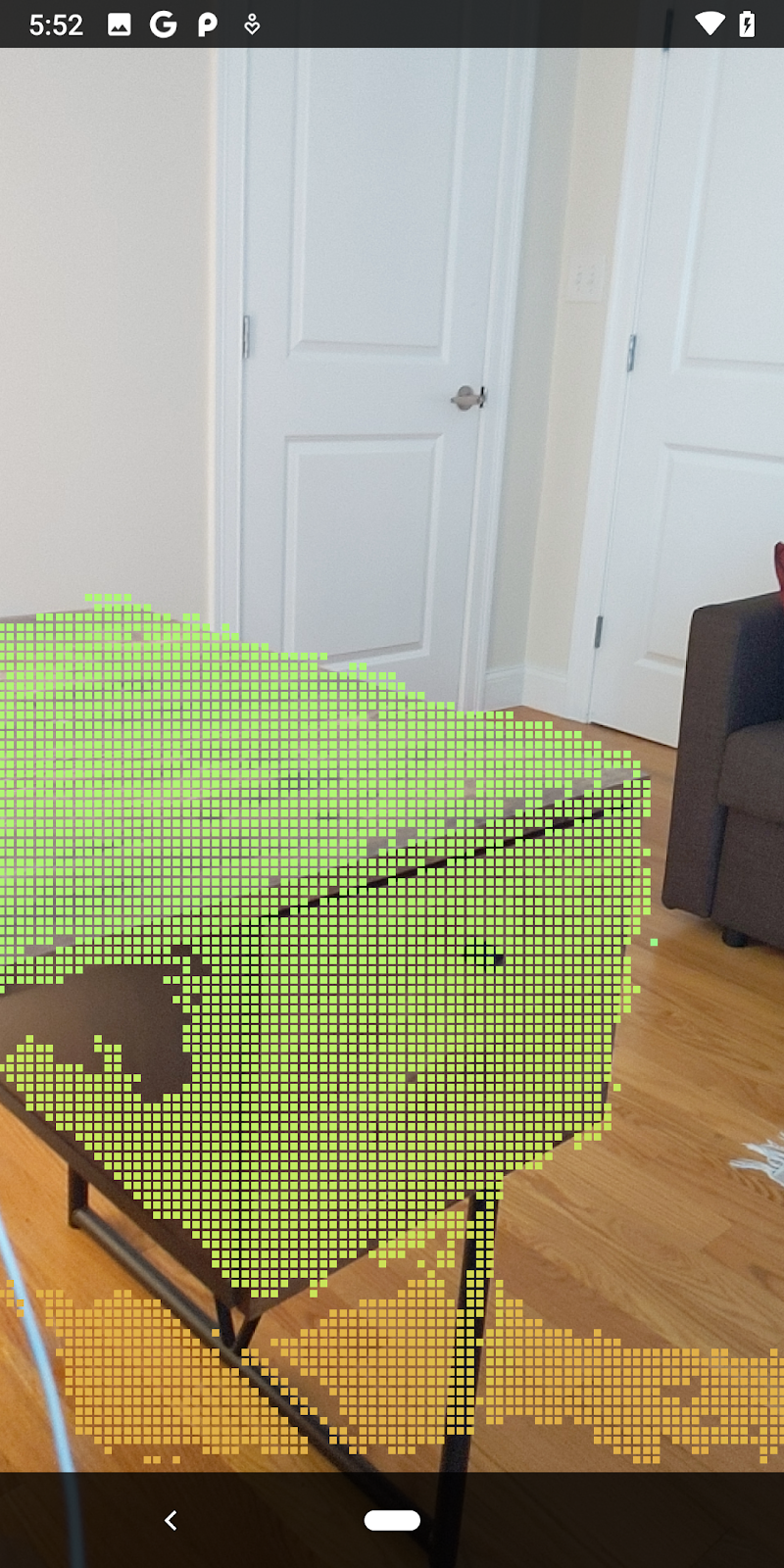 في هذا الدرس التطبيقي، ستنشئ تطبيقًا يستخدم صور العمق الأولية لكل إطار لإجراء تحليل هندسي للعالم من حولك. سيؤدي هذا التطبيق إلى ما يلي: