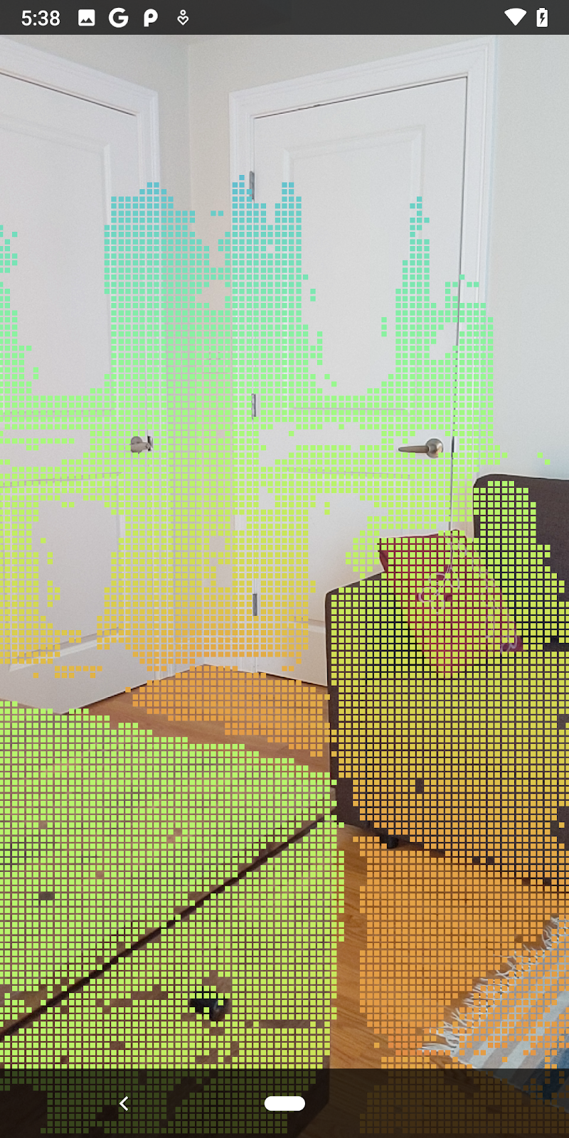 Neste codelab, você vai criar um app que usa imagens de profundidade bruta de cada frame para realizar uma análise geométrica do mundo ao seu redor. Esse app vai: