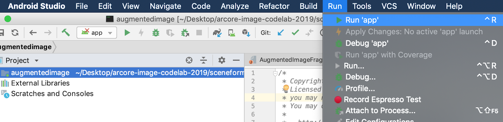 - สร้างและเรียกใช้ตัวอย่าง ARCore AugmentedImage Java
