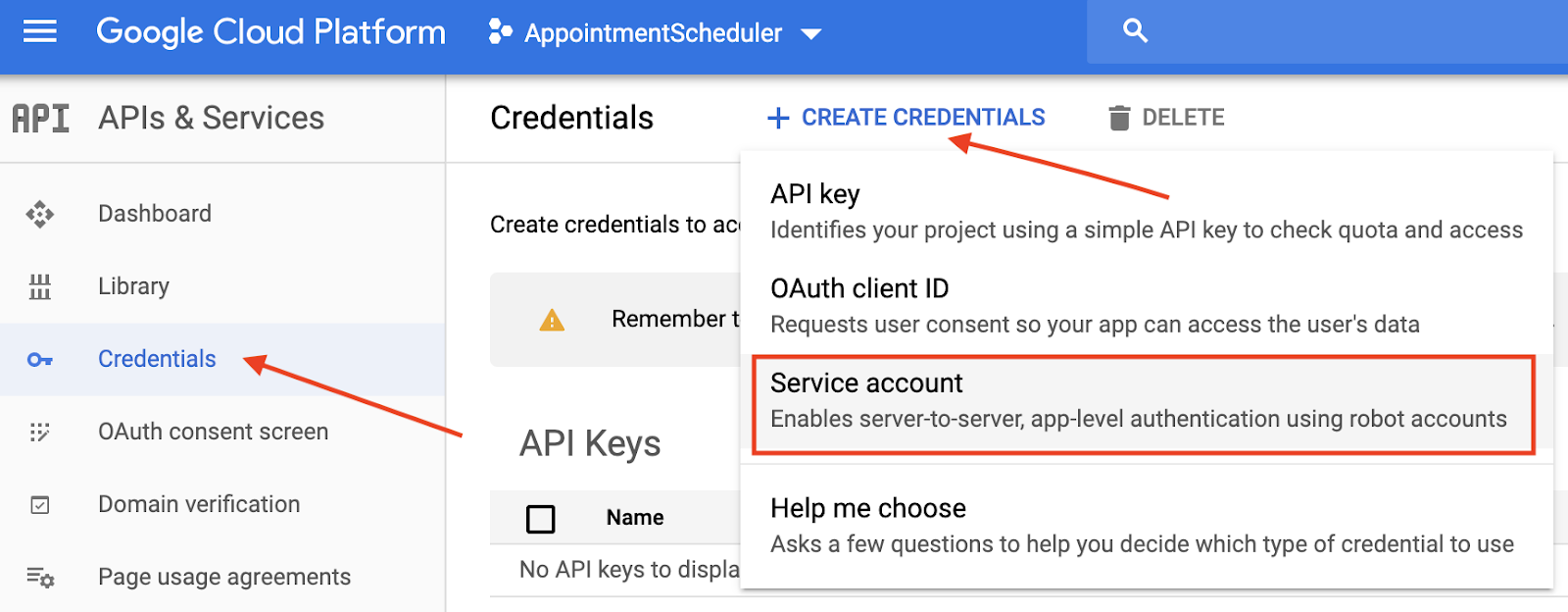 3. Klicken Sie auf Anmeldedaten erstellen. Dienstkonto. 86f51af0e7886fdd.png