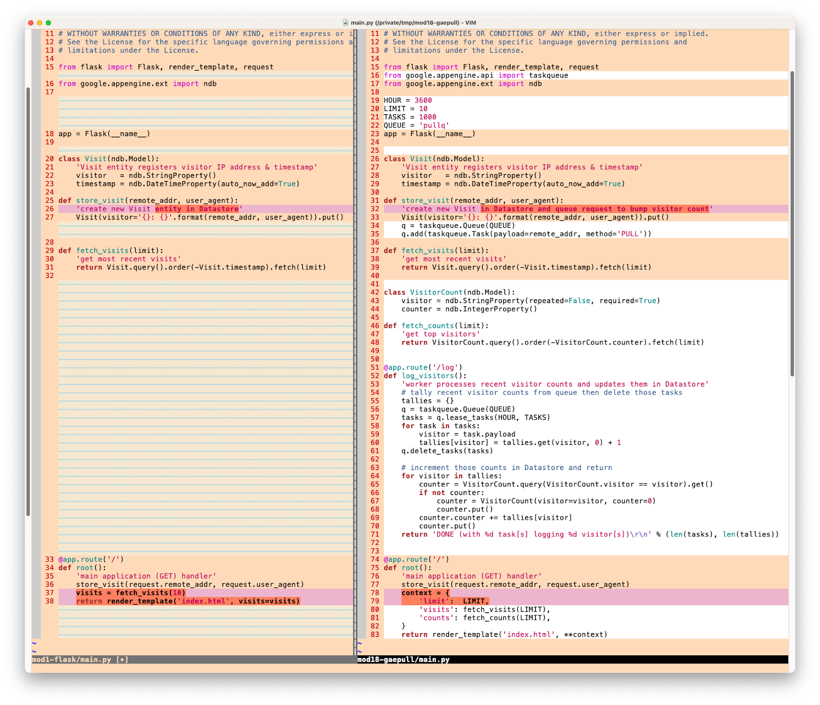 תוכלו לקרוא מידע נוסף על העברת השימוש בשירותים בחבילה ל-Python 3 ב-Module 17 Codelab ובסרטון התואם שלו. הנושא הזה לא נכלל במסגרת מודול 18, אבל למטה מפורטות גרסאות Python 3 של אפליקציית מודול 1 שהועברו אל Python 3 ועדיין משתמשת ב-App Engine NDB. (בשלב מסוים, גרסת Python 3 של אפליקציית מודול 18 תהיה זמינה גם היא).