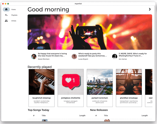 En este codelab, te ayudaremos a compilar la pantalla principal de una app llamada MyArtist, un reproductor de música en el que los fans pueden mantenerse al tanto de sus artistas favoritos. Se analiza cómo puedes modificar el diseño de la app para que se vea atractiva en todas las plataformas.
