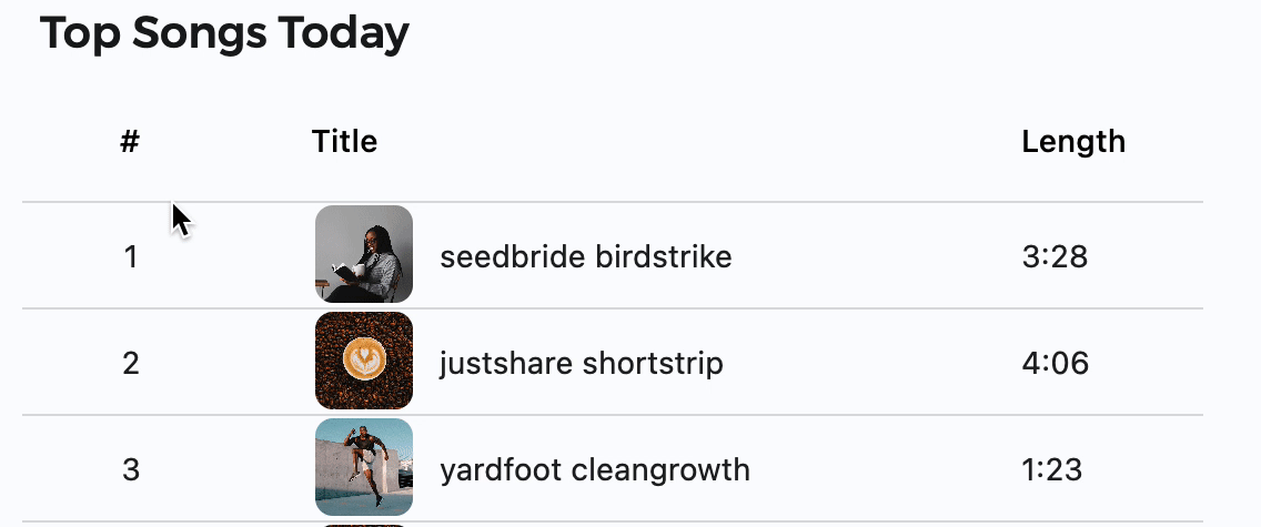 El número se convierte en un botón de reproducción que reproduce la canción cuando haces clic en él.