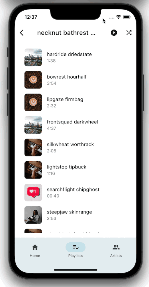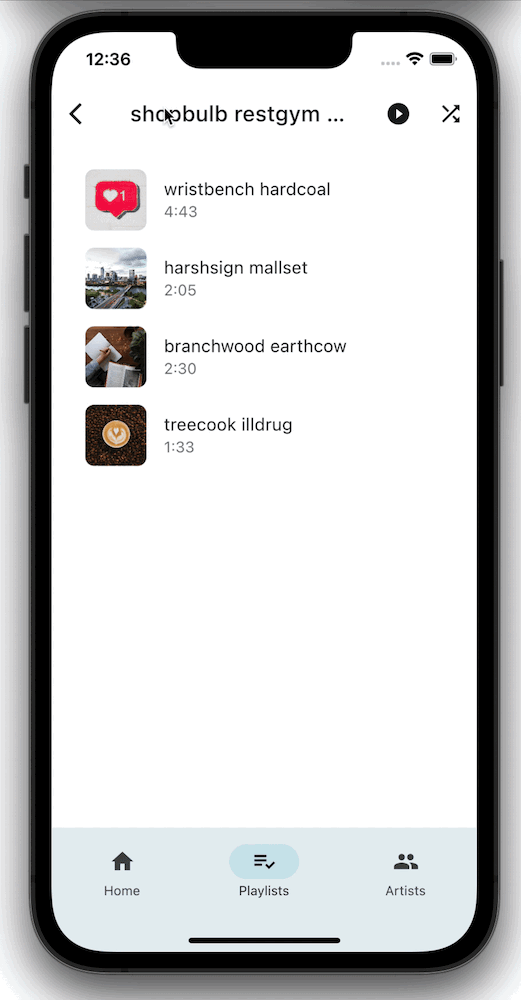 Lakukan hot reload pada aplikasi. Kedua playlist di bagian bawah tidak memiliki spasi kosong di antaranya, sehingga terlihat seperti tabel yang sama. Bukan itu yang dimaksud dan Anda akan memperbaikinya nanti.