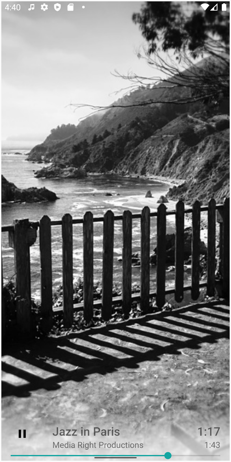 ดูตัวอย่างโค้ดต่อไปนี้ของ fragment_nowplaying.xml