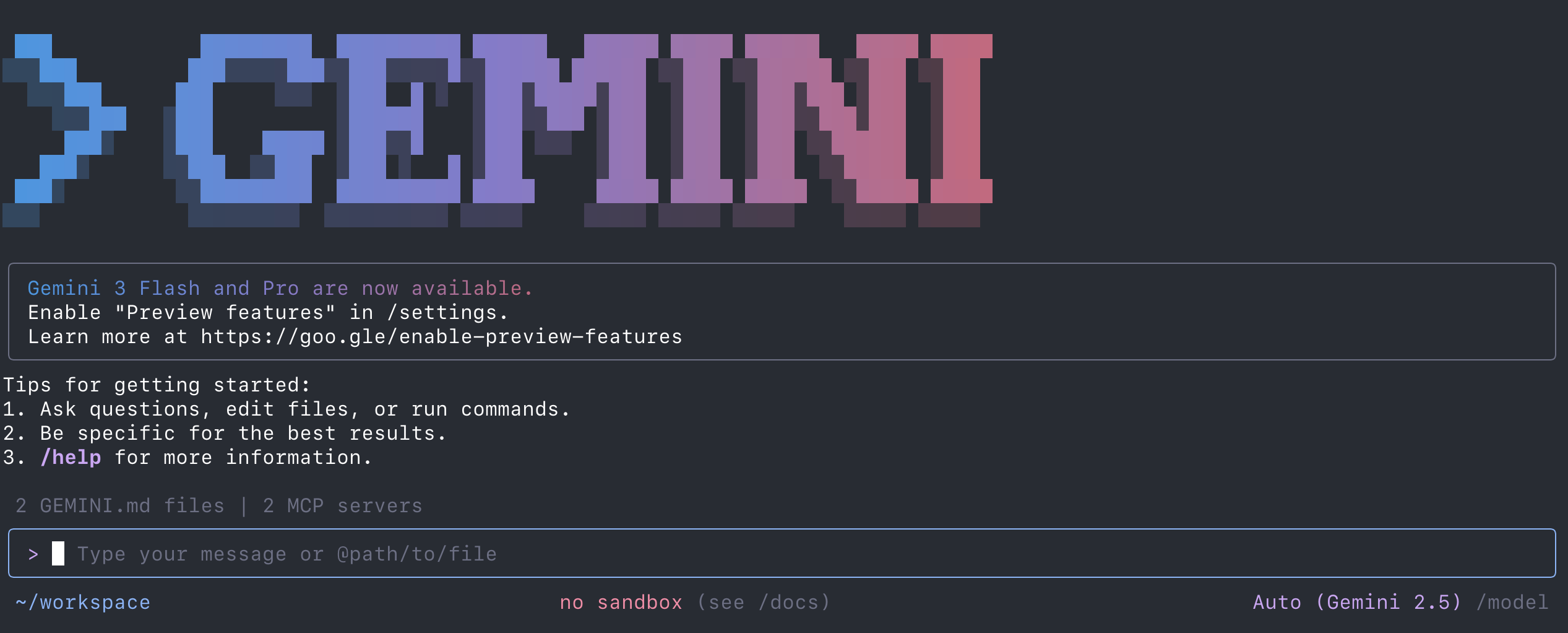 如要確認是否已正確啟用,請重新進入 Gemini CLI 並輸入: