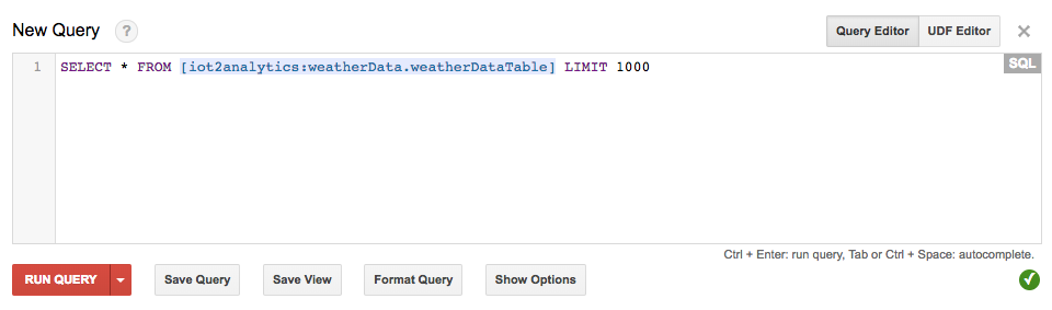 Asegúrate de que los datos estén fluyendo en la tabla de BigQuery. En la consola de Cloud, ve a BigQuery (bigquery.cloud.google.com).