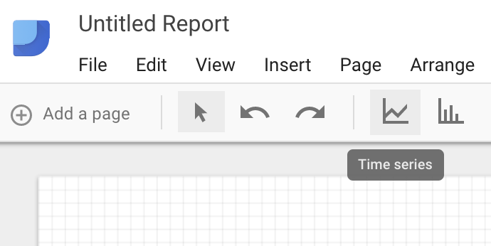 Verás un lienzo en blanco para crear tu panel. En la fila superior de íconos, elige Time Series.