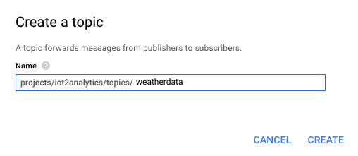 - Para el tema de Pub/Sub de salida, la ruta de acceso exacta dependerá del nombre de tu proyecto y será similar a “projects/yourProjectName/topics/weatherdata”.