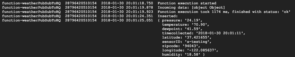 gcloud beta functions logs read function-weatherPubSubToBQ