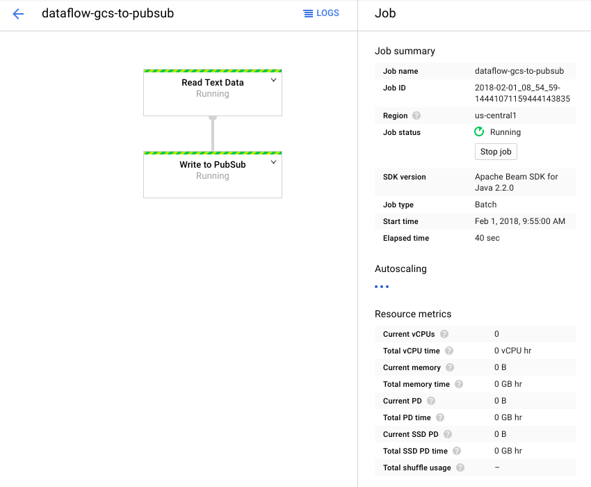 El trabajo de Dataflow debería comenzar a ejecutarse.