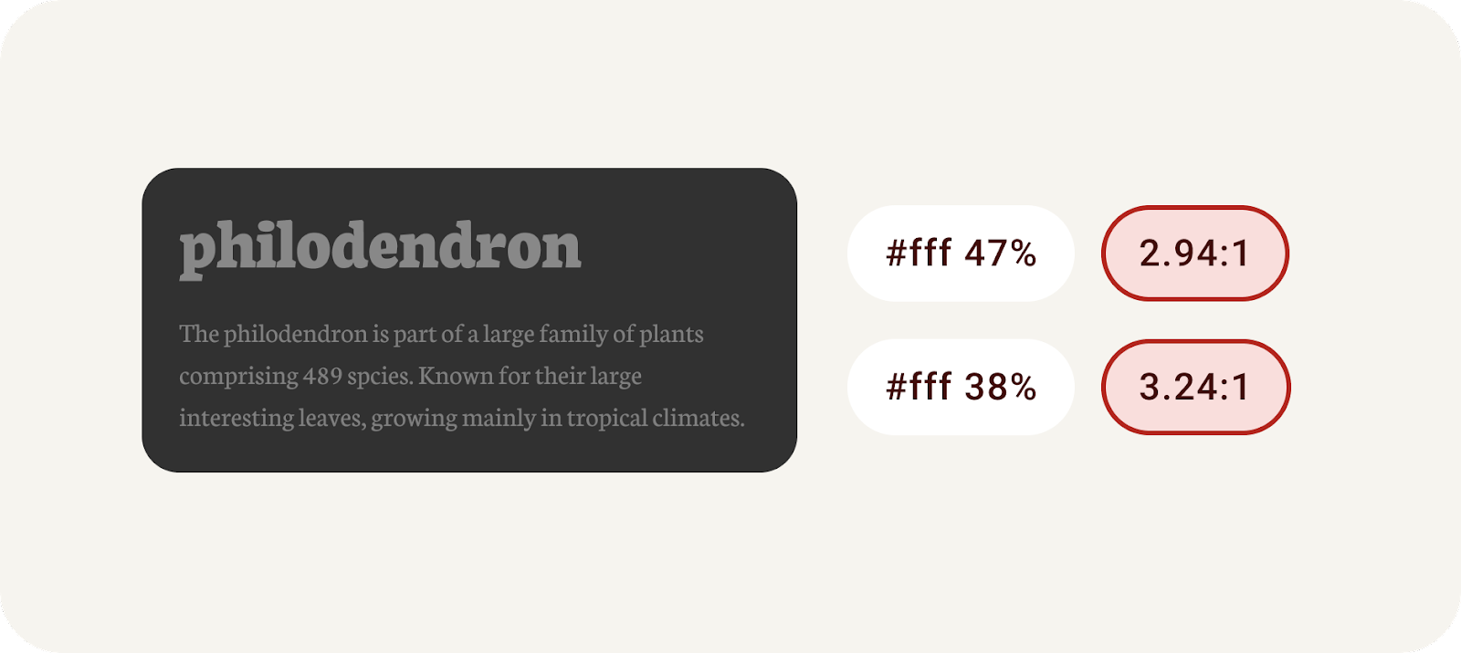 องค์ประกอบที่มีความสว่างคล้ายกันมีคอนทราสต์ที่ไม่เหมาะสมเพื่อให้อ่านได้ง่าย ในขณะที่องค์ประกอบที่มีค่าความสว่างต่างกันจะแยกความแตกต่างมากกว่า