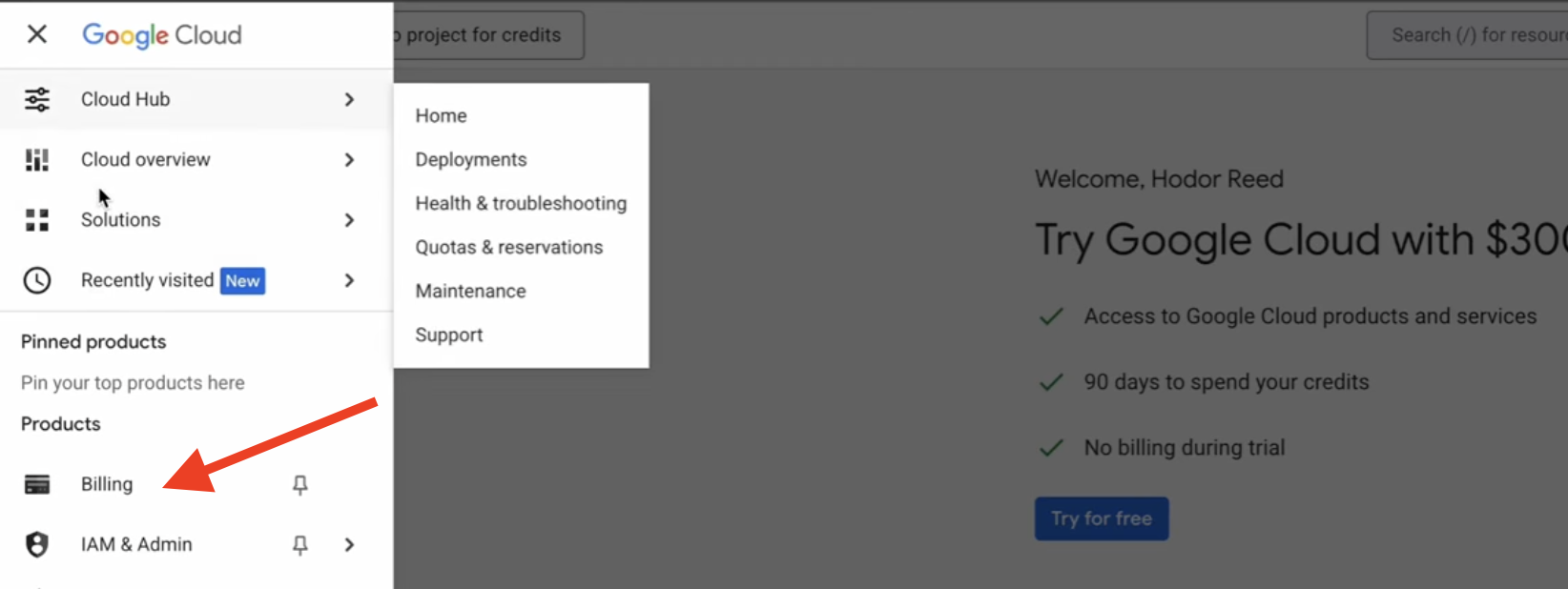- 打开 Google Cloud 控制台:https://console.cloud.google.com