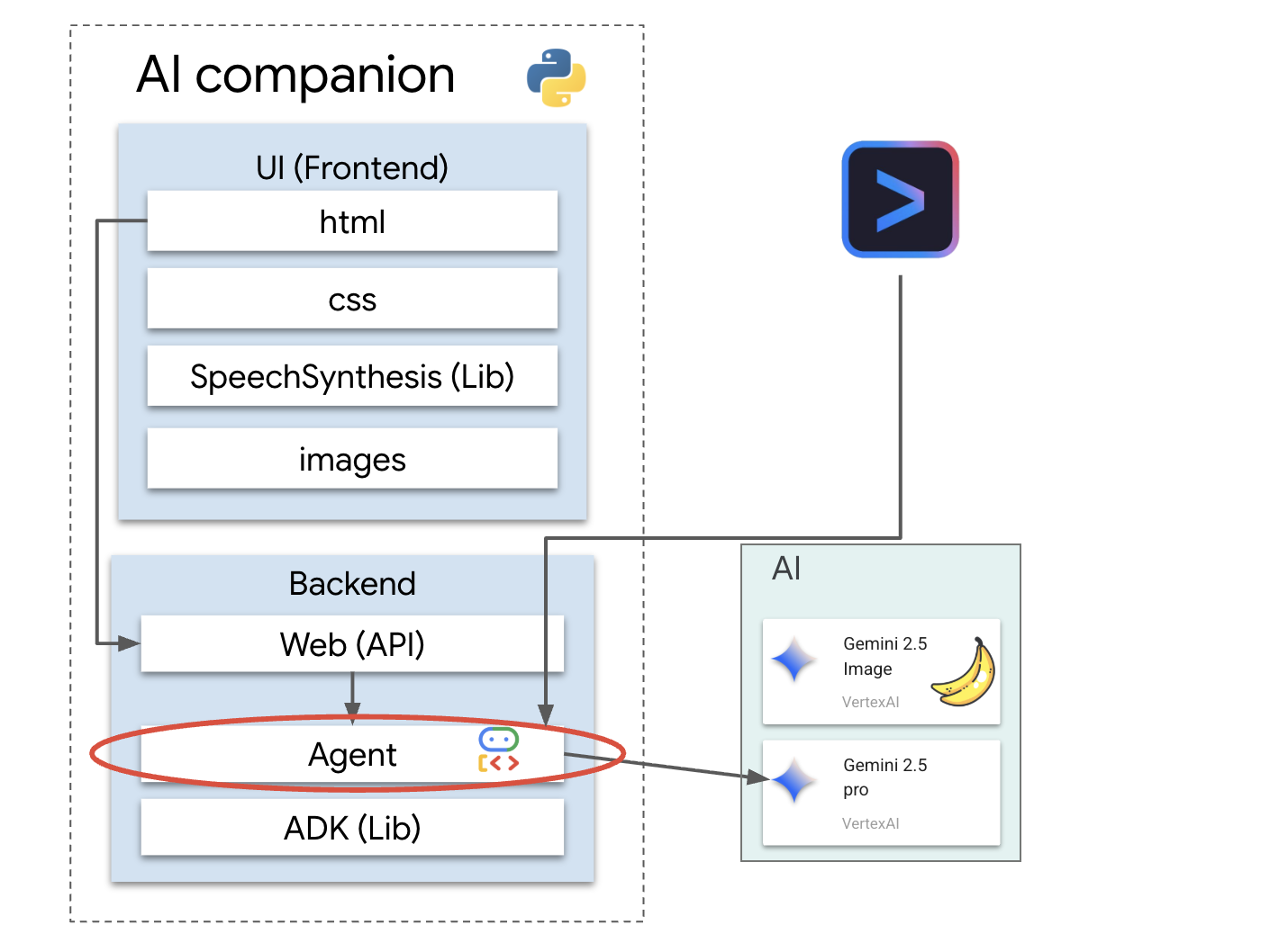 您已成功构建出先进的 AI 伴侣。您从一个基本应用开始,使用 Gemini CLI 为智能体搭建框架,赋予它丰富的个性,并为其提供工具来访问实时信息,甚至生成自己的头像。现在,您已经准备好构建更复杂、更强大的 AI 代理了。