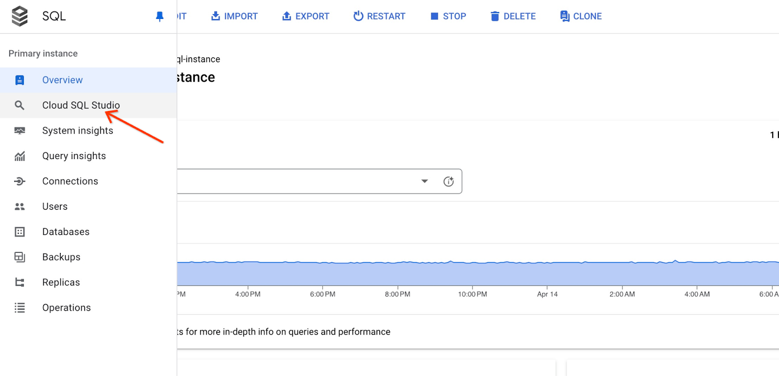 Führen Sie die Abfrage in der mysql- oder Cloud SQL Studio-Sitzung für die Datenbank aus.