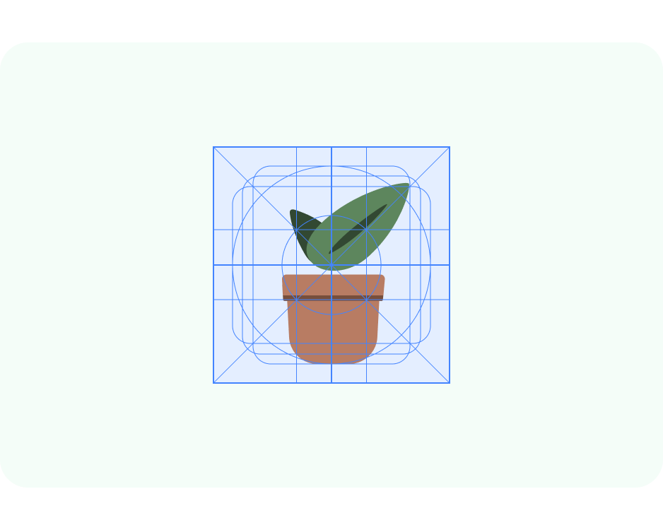 - לסמלים של אפליקציות שהצורות המותאמות אישית יכול להיות גם רקע ייחודי. כך ניתן לחתוך באופן בטוח את שכבות הסמל ולספק השפעות עדינות של תנועה על האינטראקציה. אפשר גם להשתמש ברקע בצבע אחיד ולהגדיר אותו ב-Android Studio.