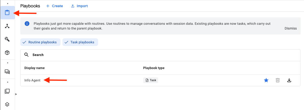 - 选择您刚刚创建的代理(例如 Info Agent)