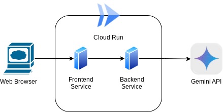 Bien sûr, nous voulons présenter cette application incroyable aux autres. Pour ce faire, nous pouvons empaqueter cette application et la déployer dans Cloud Run en tant que service public accessible par d'autres utilisateurs. Pour ce faire, revoyons l'architecture.