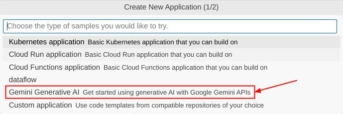 - Dari daftar aplikasi, pilih Gemini Generative AI, lalu pilih Gemini API Python