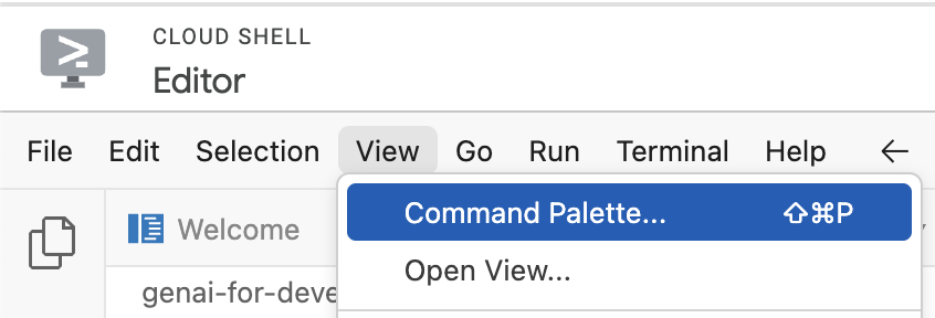 在 Cloud Shell 編輯器中查看可用的 devai cli 指令: