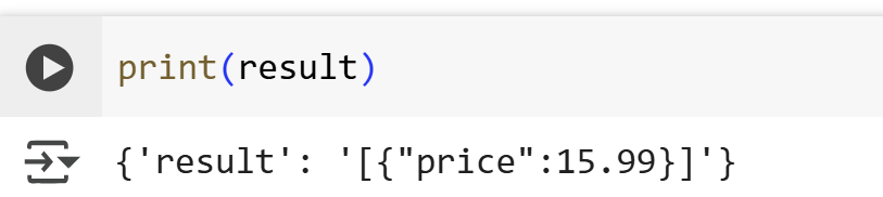 在此工具中,我们只是查找与用户搜索文字(自定义玩具说明)最接近的匹配项并返回其价格。您还可以对其进行修改,以查找最接近的 5 个玩具的平均价格: