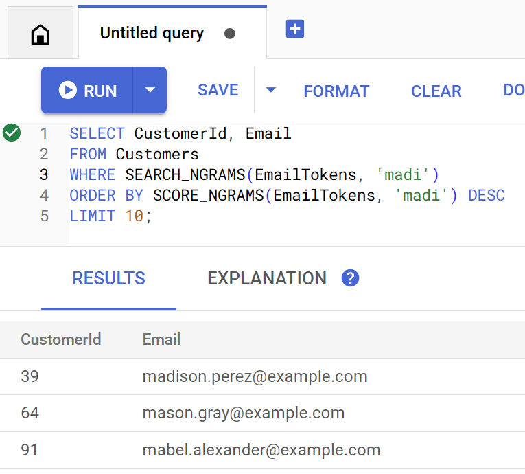 - Búsqueda en el texto completo: Aprende a implementar la funcionalidad de búsqueda en el texto completo en Spanner. Explorarás la indexación de datos de texto y la escritura de consultas eficientes para realizar búsquedas basadas en palabras clave en tus datos operativos, lo que permitirá un potente descubrimiento de datos, como encontrar clientes de manera eficiente por dirección de correo electrónico dentro de nuestro sistema bancario.