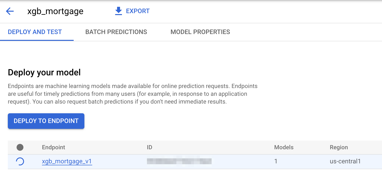 Now it's time to create an endpoint within this model. We can do that with this gcloud command: